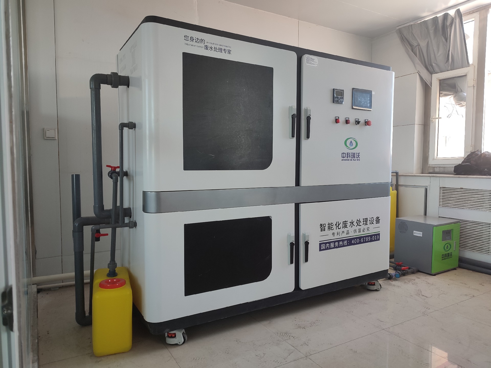 ①該實驗室污水處理設備機身和箱體外殼選用特別的復合材料,耐高溫、耐腐蝕性強,使用壽命長;